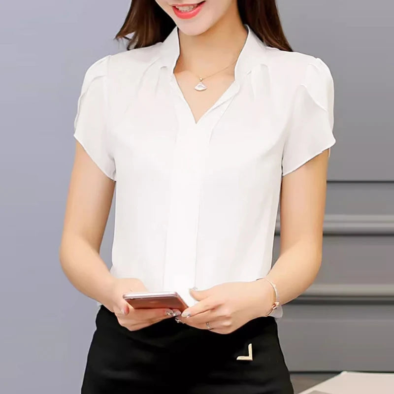 Formal V-neck Chiffon Shirt