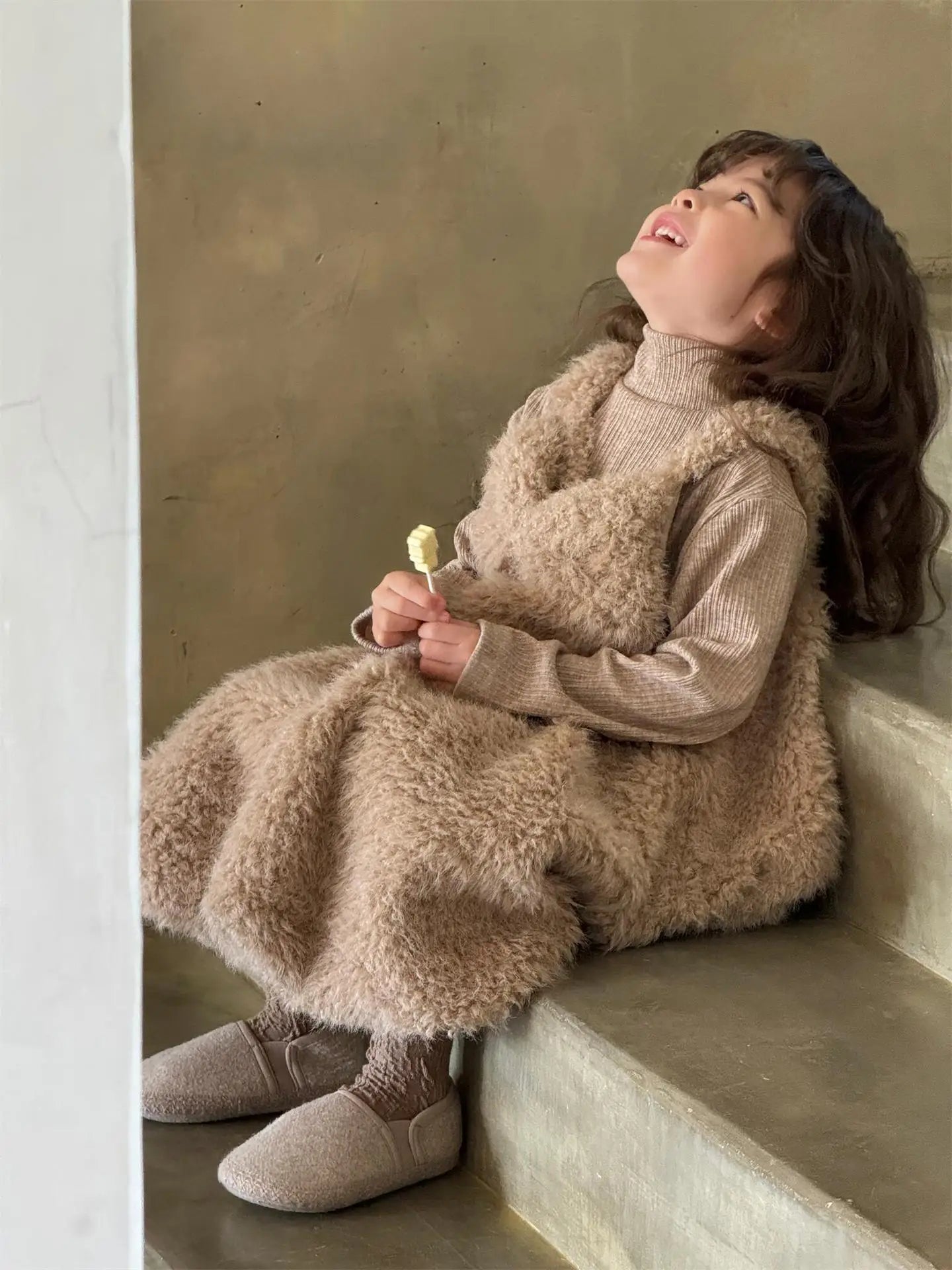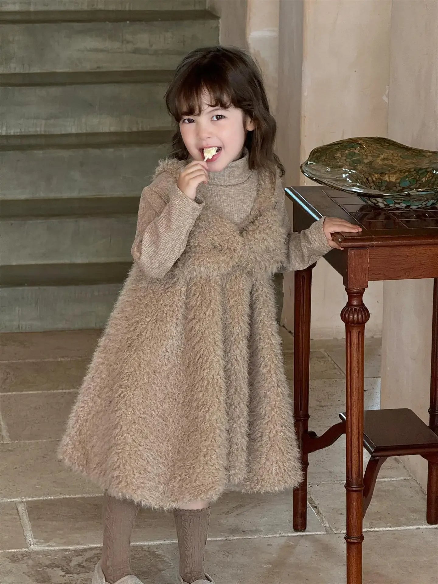 Girls Brown Wool Princess Dress