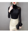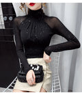 Women Korean Mesh High Neck Top